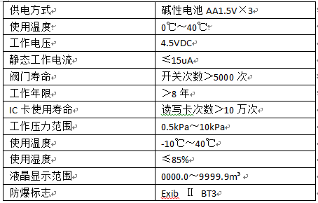 IC卡预付费式气表采用先进的低功耗微控技术,脉冲采样技术的新一代智能用气计量设备。该产品具有预付费管理,阀控通断、用量显示、故障报警等功能,适用于天然气、液化石油气、人工煤气等气体流量计量的仪表。它由可发信燃气表基表部分、微控制器系统、脉冲采样系统、电控气阀系统组成,具有可靠性高、精度高、功耗低的特点。各项指标均符合GB/6968-1997《膜式煤气表》和CJ/T112-2000《IC卡家用膜式燃气表》的要求。本产品符合GB3836.1-2000和国标GB3836.4-2000标准相应规定,防爆标志为ExibⅡBT3.